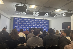 绿军队记Bobby Manning晒出詹姆斯新闻发布会前10分钟的照片,可以看到现场人头攒动,老詹人气可见一斑。