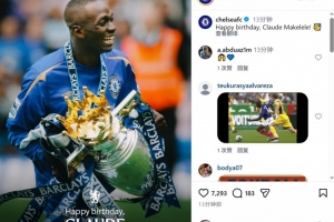 体育资讯2月18日讯 今天是法国足坛名宿马克莱莱的53岁生日,老东家切尔西为他庆生。