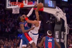 GIF-唐斯面对面硬刚惨遭血帽 布伦森在替补席没眼看了