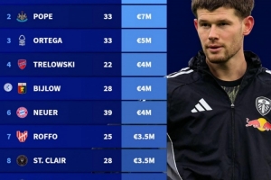 体育资讯2月23日讯 德转列今夏合同到期十大门将身价,梅斯利耶1200万欧居首。